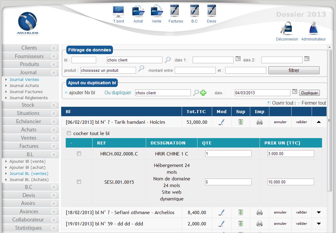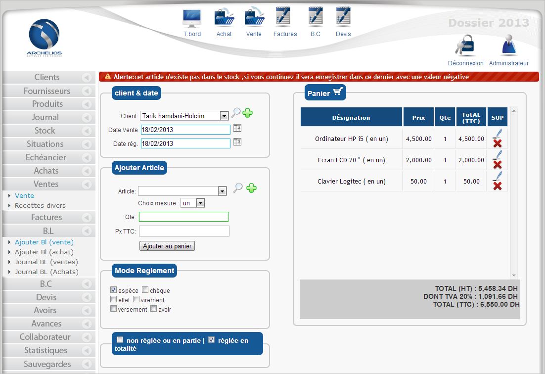 Archelios Gestion Commerciale est un logiciel spécialement conçu pour les TPE, PME-PMI de tous secteurs d’activités. Il permet de gérer et maîtriser votre circuit complet de vente et d’achat dans une seule application, aussi ,créer un catalogue d’articles détaillé avec photos, gestion de code-barres et impression des étiquettes, être au plus près des règlements et des relances clients, suivre l’état de vos stocks et les besoins de réapprovisionnement, analyser vos statistiques d’achats et de ventes devient une taches aisée.
